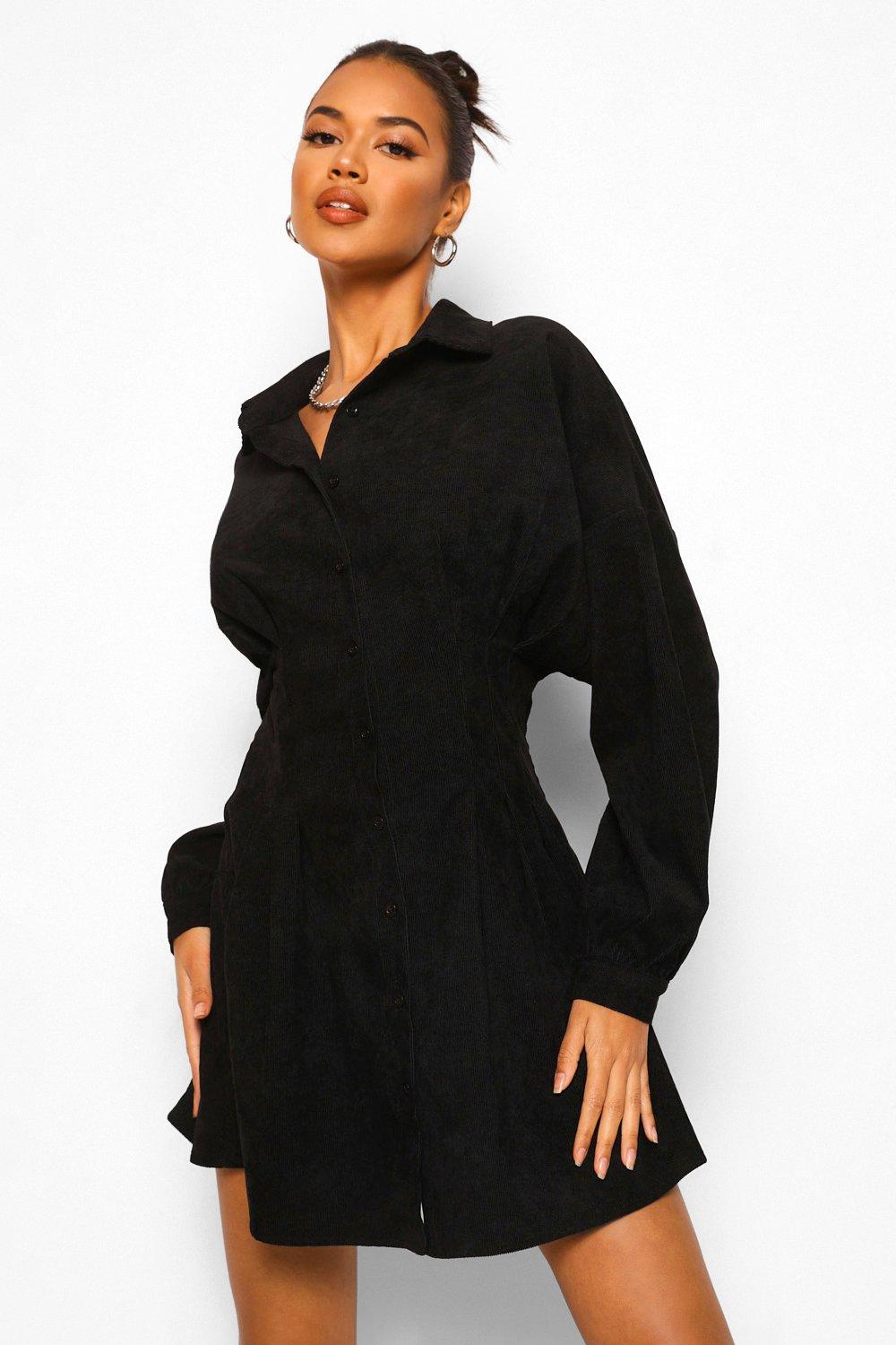 Women S Cord Cinched Waist Lace Up Back Shirt Dress Boohoo Uk